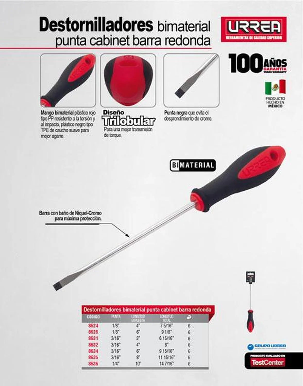 Destornillador bim barra redonda punta cabinet 1/4×10″ Urrea 8636