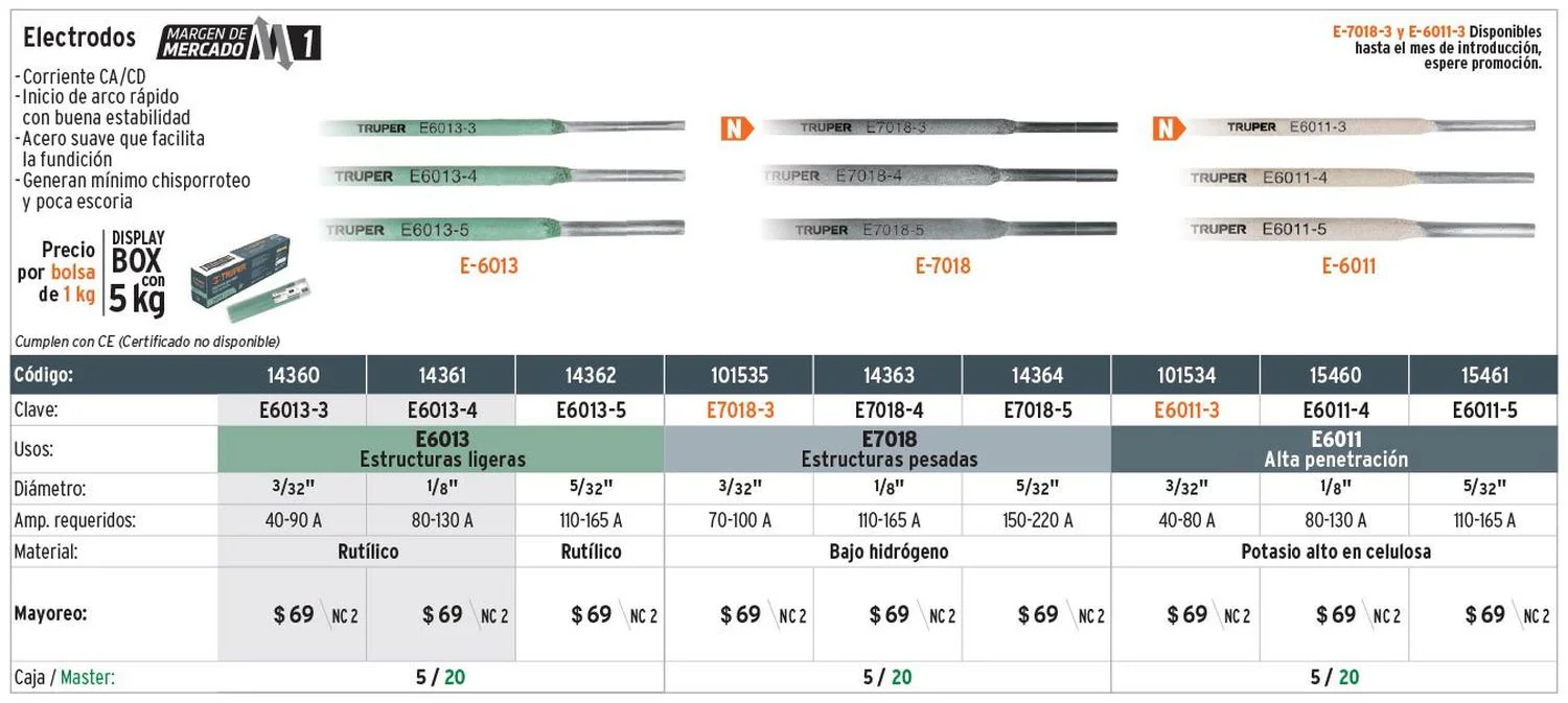 Potasio alto en celulosa, alta penetraciónAcero suave que facilita la fundiciónInicio de arco rápido con buena estabilidadGeneran mínimo chisporroteo y poca escoriaCorriente CA / CD