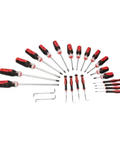 -Contenido: 4 piezas planos: 1/4″x 1-1/2″, 5/16″ x 6″, 5/16″ x 8″, 3/16″ x 4″. Phillips: PH2 x 1-1/2″, PH1 x 3″, PH1 x 4″, PH2 x 6″, PH3 x 8″. Torx: T30 x 6″, T40 x 6″, T25 x 4″, T20 x 4″. Precisión: PH00 x 2″, PH000 x 2″, T5 x 2″, T6 x 2″. Mini ganchos y punta: Tipo lezma. Gancho curvo, gancho completo, gancho 90°. Tipo de barra: Redonda.-Material de barra: cr-v. Material de punta: cr-v. -Acabado: Cromado.-Material del maneral: PP+TPR.-Tipo de barra: Redonda.-Desatornillar, atornillar.