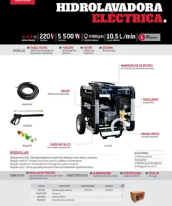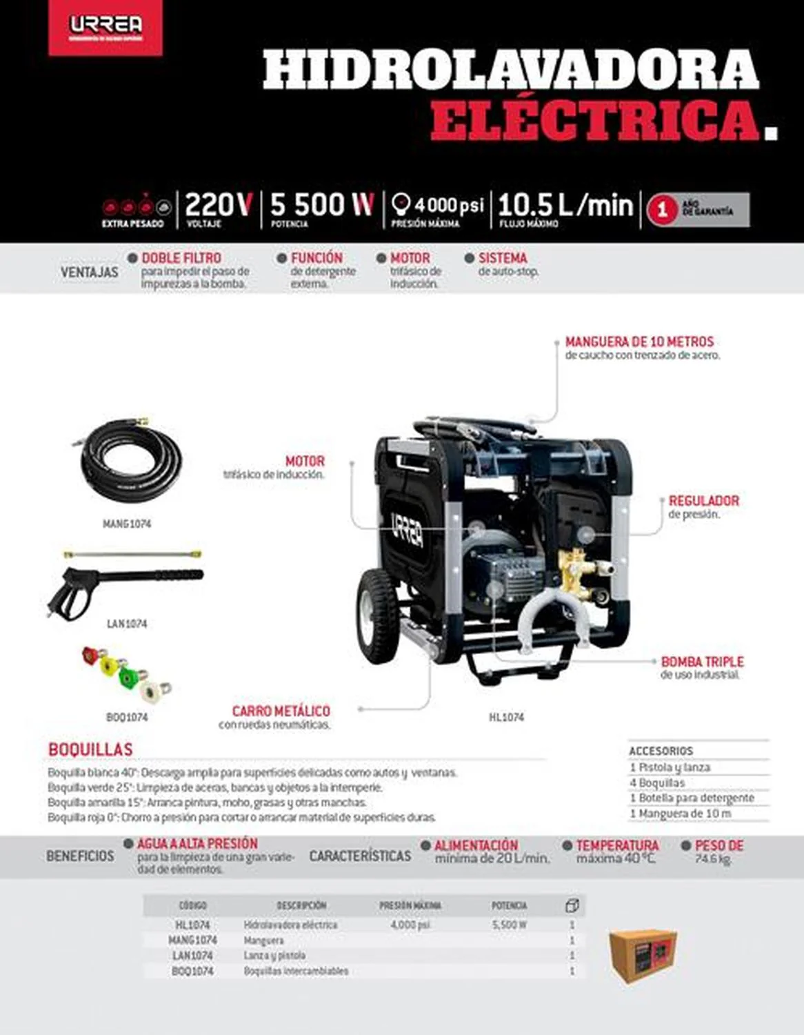 MARCA: Urrea DESCRIPCION DEL PRODUCTO: -Pistola y lanza de acero inoxidable.-Presión máxima: 4,000 psi.-Lanza y pistola para hidro lavadora Urrea HL1074. ESPECIFICACIONES TECNICAS: CONTENIDO DEL PAQUETE: 1 lanza y pistola. GARANTIA: Sin garantía ALTO EN CM: 5.5 LARGO EN CM: 55 FONDO EN CM: 21 PESO EN KG: 1.35