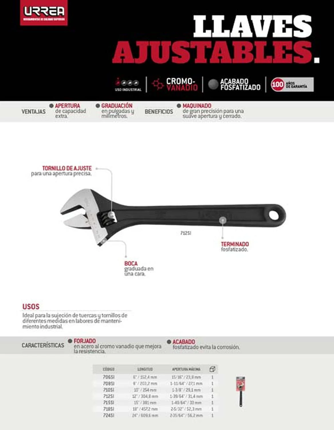 -Maquinado de gran precisión para asegurar un suave accionamiento y mejor ajuste al cerrar la quijada, mango ergonómico, abertura con esquinas redondeadas que evitan la concentración de esfuerzo y un mejor ajuste, mordazas de capacidad extra que permite cubrir una amplia variedad de tornillos y tuercas