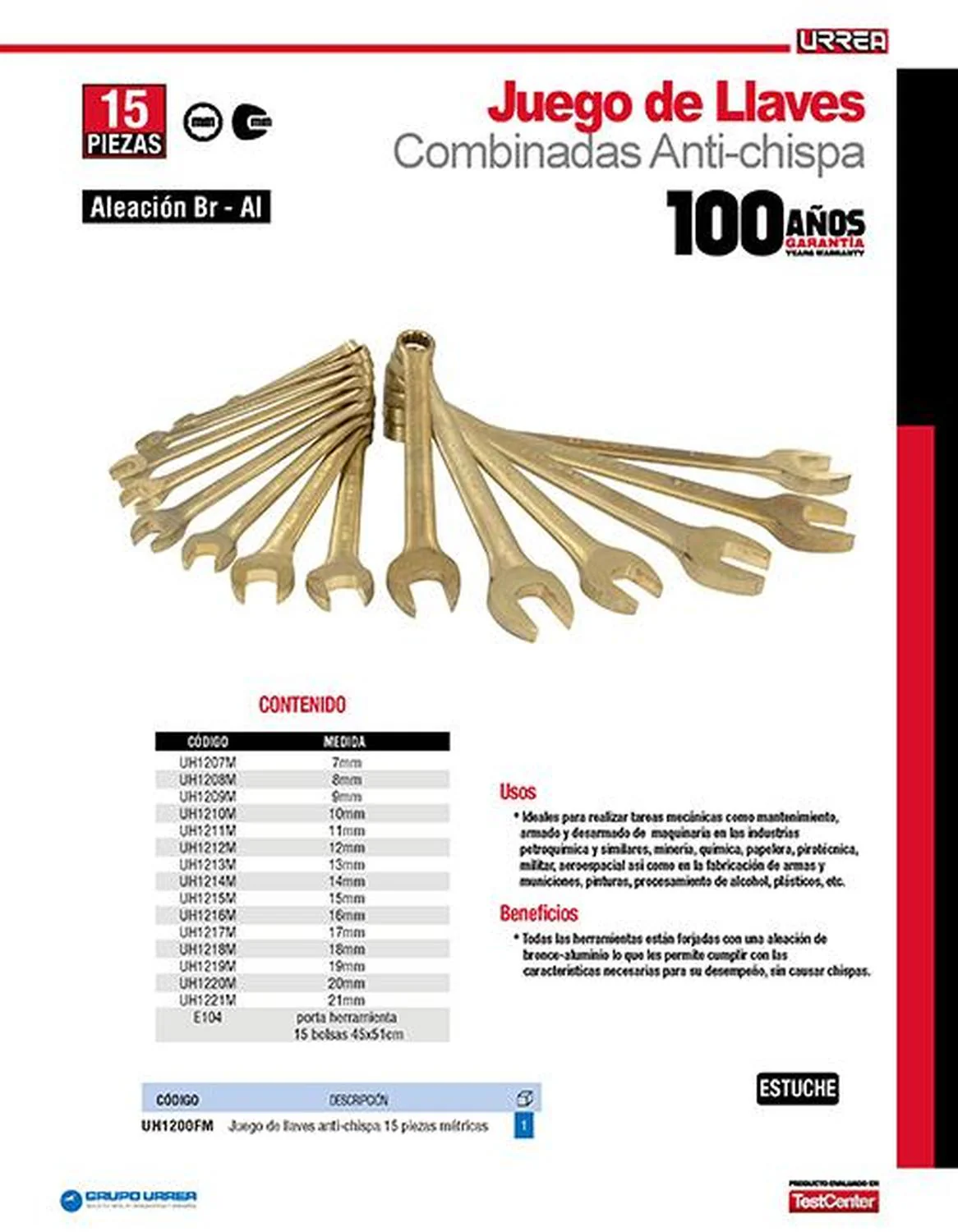 Llave combinadas antichispa 12 puntas 12 mm Urrea UH1212M