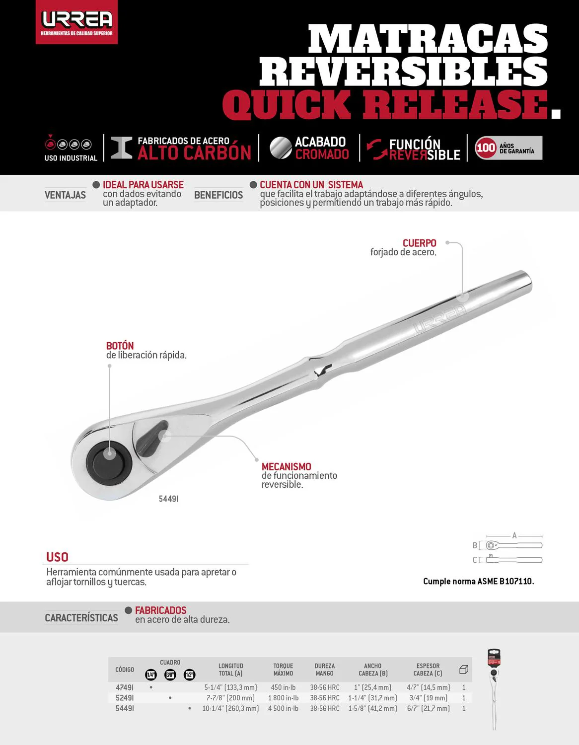 -Matraca 3/4″. Cuerpo de acero cromado.