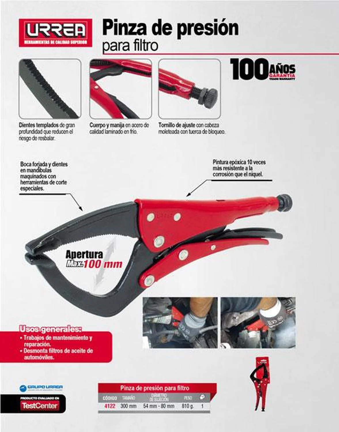 Pinza para filtros de 2 3/4″ a 3 1/8″ Urrea 4122